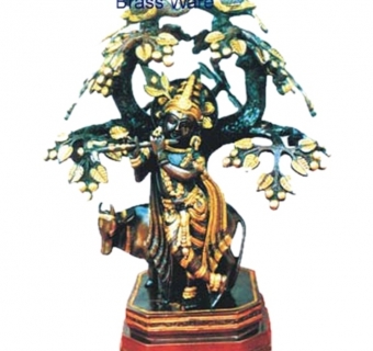 • bronze lord krishna with cow under tree